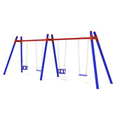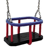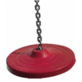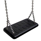 Gummisitz mit Aluminiumplatte und Kettenaufhängung.